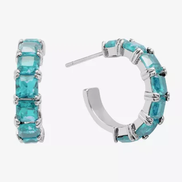 Sparkle Allure Womens Blue Crystal Pure Silver Over Brass Circle Drop Earrings