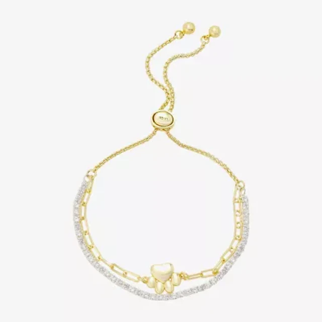 Footnotes Faith Womens Cubic Zirconia 14K Gold Over Brass Cross Bolo Bracelet
