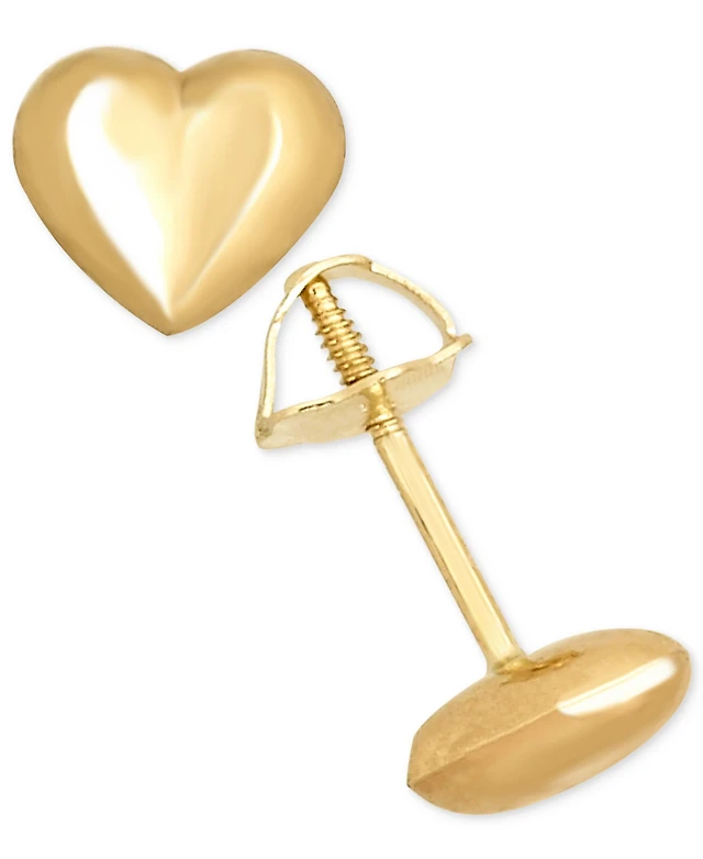 Children's High Polished Puff Heart Stud Earrings in 14k Gold