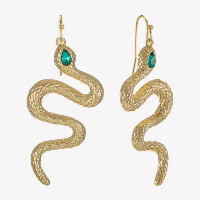 Bijoux Bar Gold Tone Snake Womens Green Glass Drop Earrings