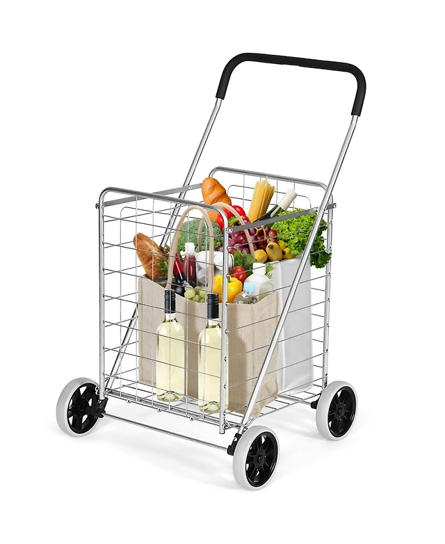 Costway Folding Shopping Cart Utility Trolley Portable For Grocery Laundry Travel