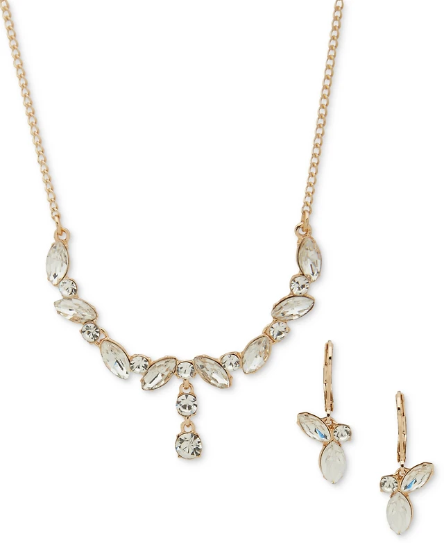 Anne Klein Crystal Drop Earrings & Two-Row Necklace, 16" + 3" extender