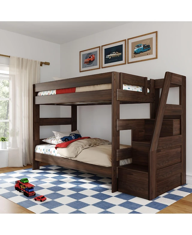 Max and Lily Twin over Full Staircase Bunk Bed with Trundle, Clay