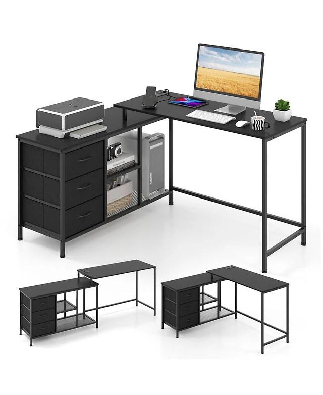 Gouun L Shaped Computer Desk With Power Outlet For Working Studying Gaming