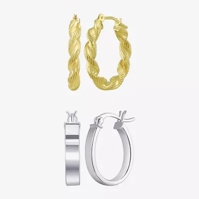 Yes, Please! Womens Lab Created White Sapphire 14K Gold Over Silver Round 2 Pair Earring Set