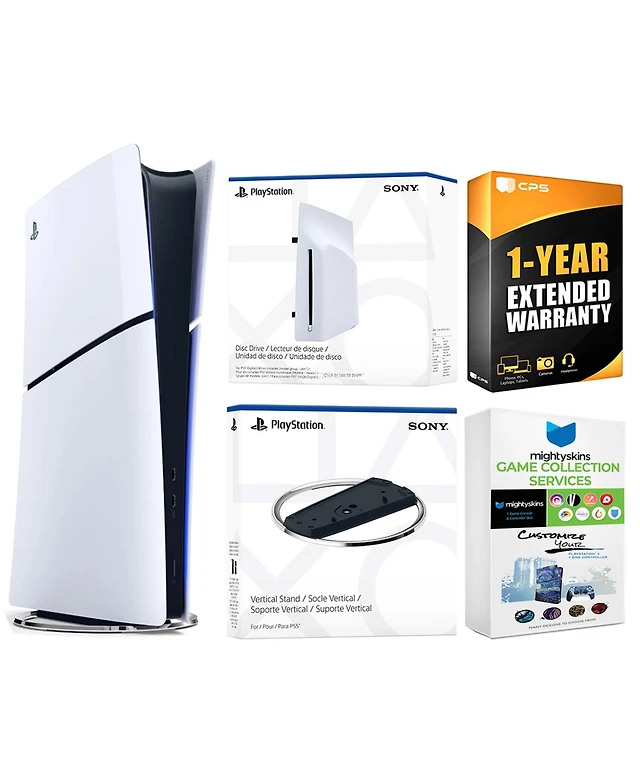 Sony PlayStation 5 Slim Digital Bundle with Disc Drive, Vertical Stand, and MightySkins Game Collection Services