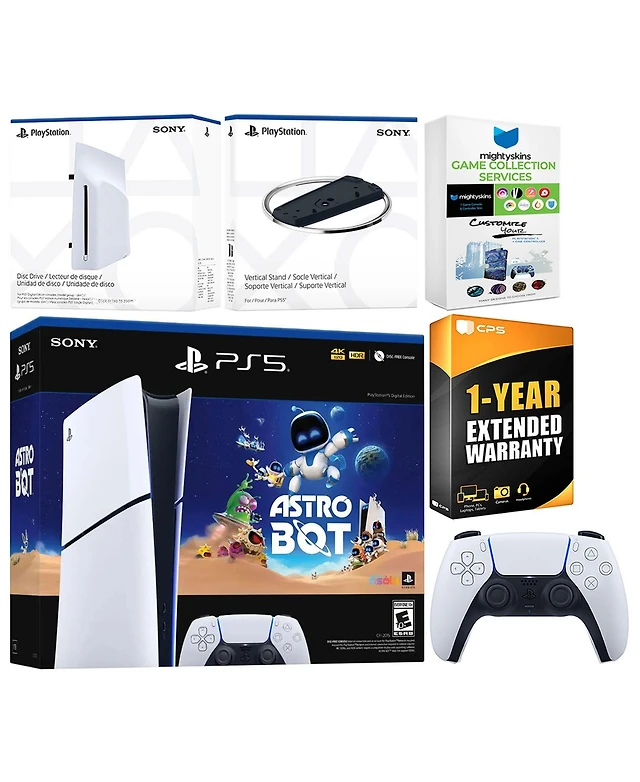 Sony PlayStation 5 Slim Disc Astro Bot Bundle with Extra Controller, Fps Grip Kit, MightySkins Code and 2 Year Extended Warranty