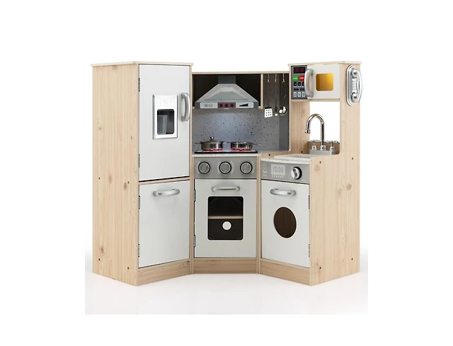 Corner Kitchen Playset with Coffee Machine Oven Microwave Washing