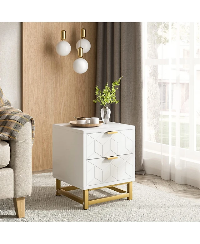 Two-Drawer Upholstered Nightstand – Chic Bedroom Storage with Upholstered Details