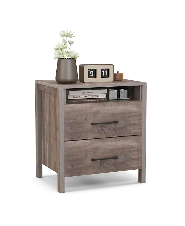 Gouun Wood Retro End Table with Mirrored Glass Drawer and Open Storage Shelf