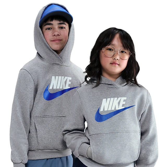 Nike Boys NSW Club HBR Fleece Hoodie - Boys' Grade School Dark Grey Heather/Game Royal