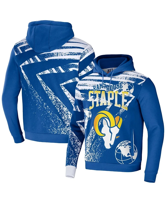 Men's Nfl X Staple Royal Los Angeles Rams Team Slogan All Over Print Pullover Hoodie