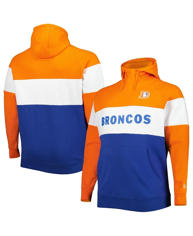 New Era Men's Orange/Royal Denver Broncos Big Tall Throwback Color block Fleece Raglan Pullover Hoodie