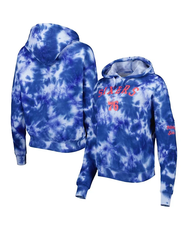 Women's New Era Royal Philadelphia 76ers Brushed Cotton Tie-Dye Pullover Hoodie