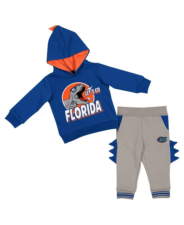 Infant Boys and Girls Colosseum Royal, Gray Florida Gators Dino Pullover Hoodie Pants Set