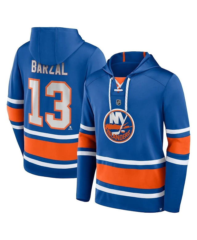 Men's Fanatics Mathew Barzal Royal New York Islanders Name and Number Lace-Up Pullover Hoodie