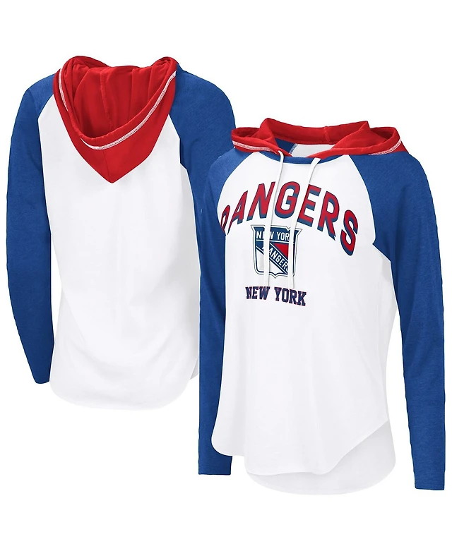 G-iii 4Her by Carl Banks Women's White/Royal New York Rangers Vip Raglan Long Sleeve Hoodie T-Shirt