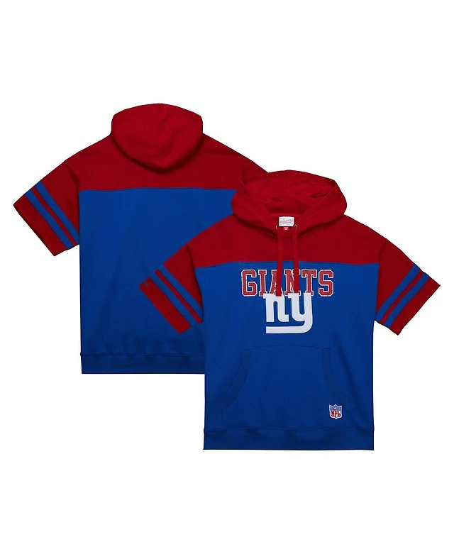 Mitchell & Ness Men's Royal New York Giants Off Field vintage-like Logo Short Sleeve Pullover Hoodie