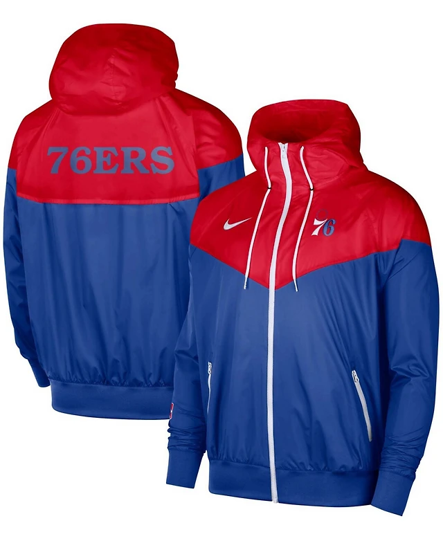 Men's Red, Royal Philadelphia 76Ers 75Th Anniversary Courtside Windrunner Raglan Hoodie Full-Zip Jacket