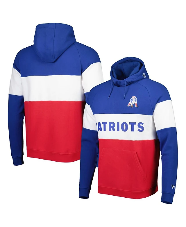 Men's New Era Red, Royal England Patriots Colorblock Throwback Pullover Hoodie