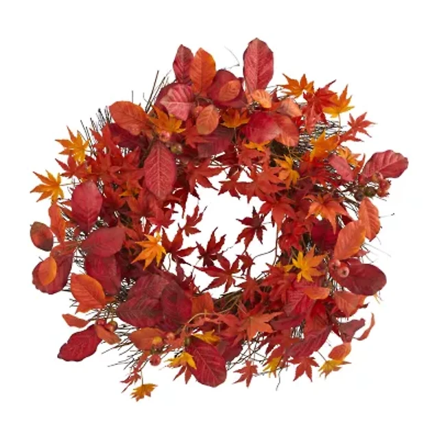 Nearly Natural 22" Faux Magnolia & Maple Wreath