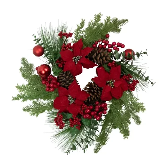 Kurt Adler Berries And Pinecone Burgundy Wreath