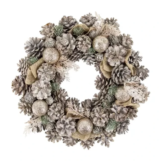 Nearly Natural 2' Winter Owl Pinecone Berry Faux Wreath