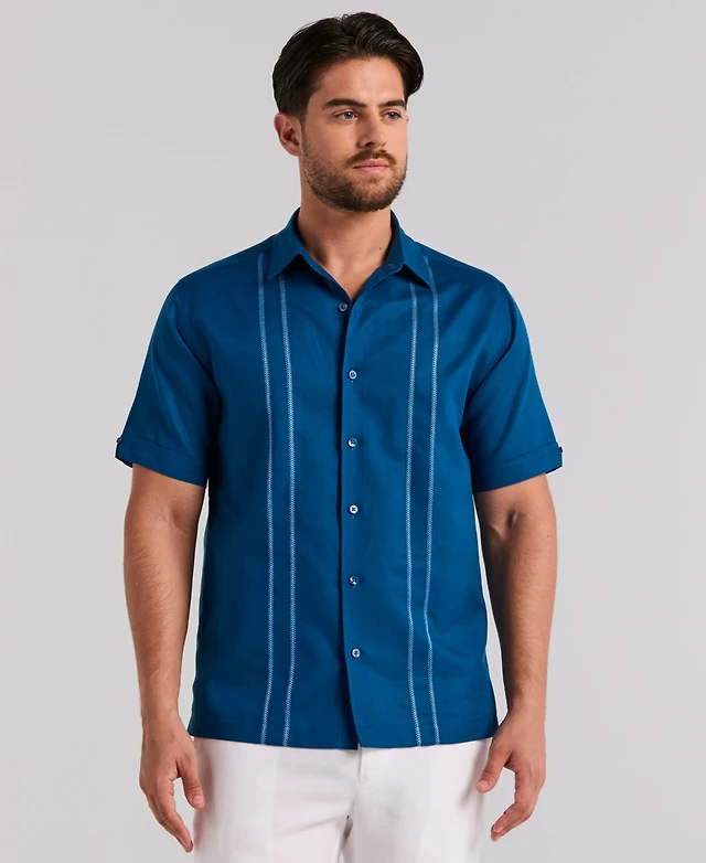 Cubavera Men's Pick Stitch Panel Short Sleeve Button-Down Shirt