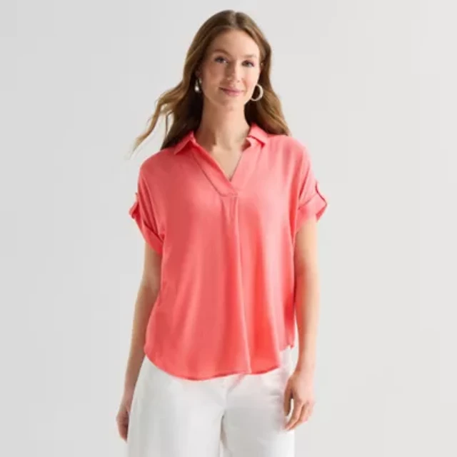 Worthington Womens Short Sleeve Slim Fit Blouse