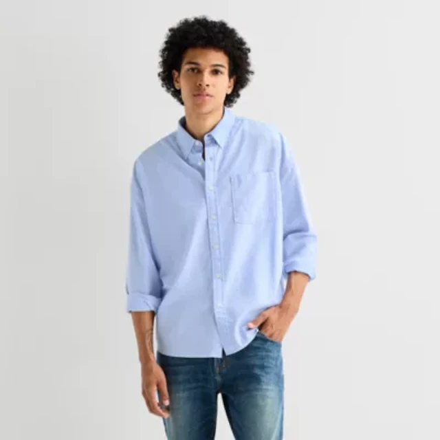 mutual weave Mens Long Sleeve Relaxed Oxford Button-Down Shirt