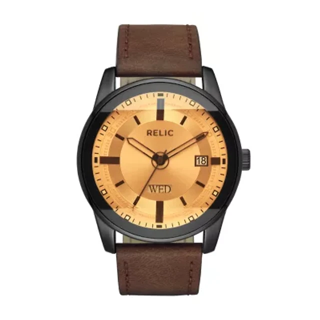 Relic By Fossil Mens Brown Leather Strap Watch Zr15946
