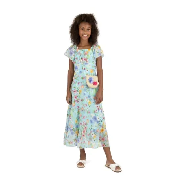 Rare Editions Big Kid Girls Short Sleeve Flutter Floral Maxi Dress
