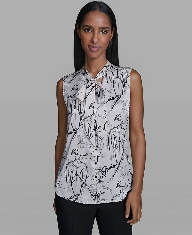 Karl Lagerfeld Women's Scoop-Neck Sleeveless Knit Top with Contrast Trim