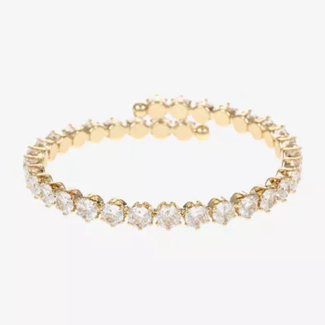 Sparkle Allure Womens Cubic Zirconia 14K Gold Over Brass Heart Bangle Bracelet
