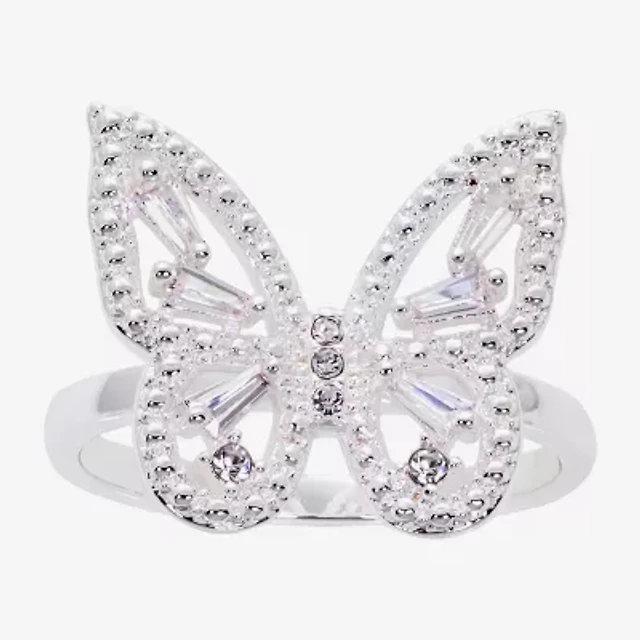 Sparkle Allure Womens Cubic Zirconia Pure Silver Over Brass Butterfly Cocktail Ring