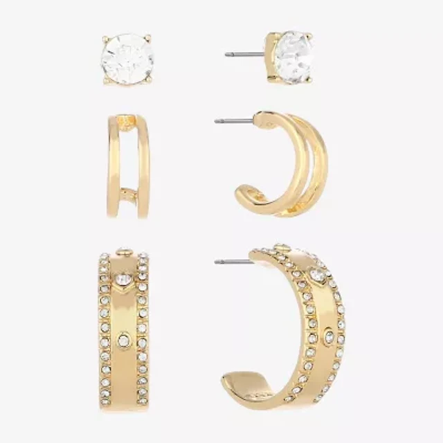 Monet Jewelry Gold Tone Womens Glass Round Hypoallergenic 3 Pair Earring Set