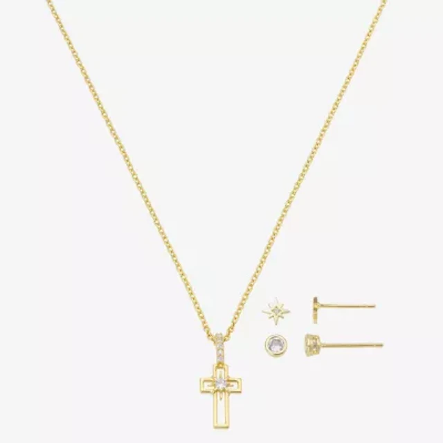 Gratitude & Grace Girls Cubic Zirconia 14K Gold Over Brass Cross Star 3-pc. Jewelry Set