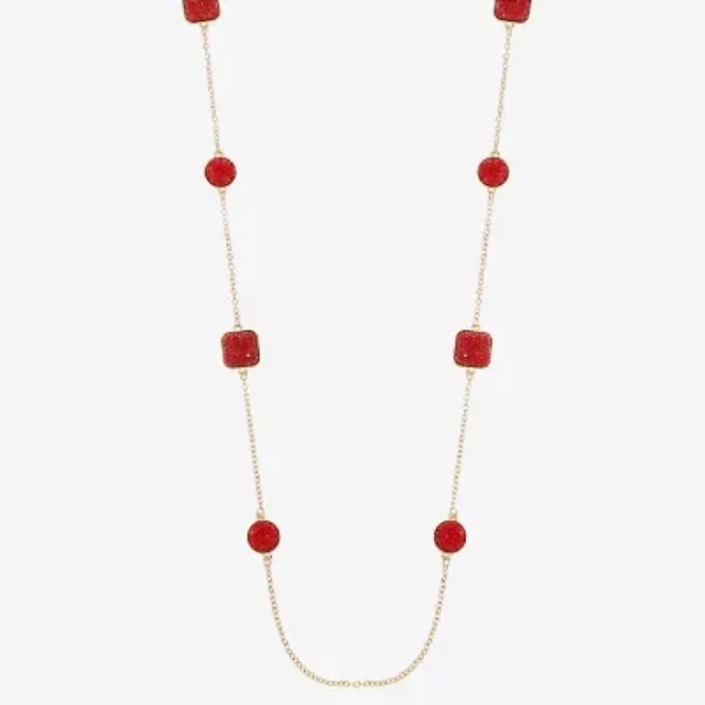 Mixit Gold Tone & Red Womens 36 Inch Strand Necklace