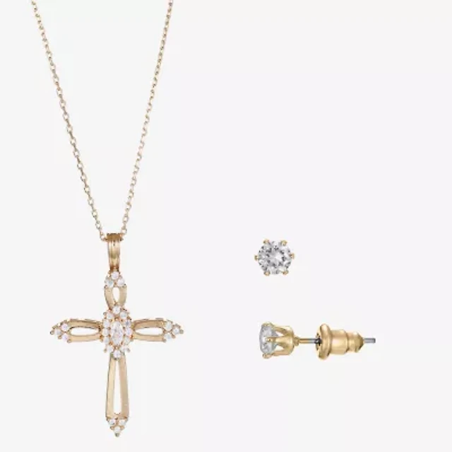 Sparkle Allure Light Up Box Womens Cubic Zirconia 14K Gold Over Brass Cross 2-pc. Jewelry Set