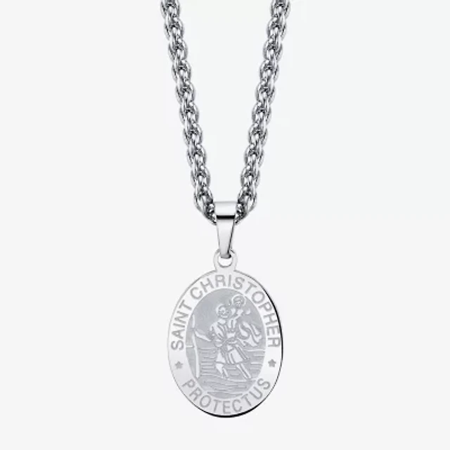 J.P. Army Men's Jewelry Dad Stainless Steel 24 Inch Box Round Pendant Necklace