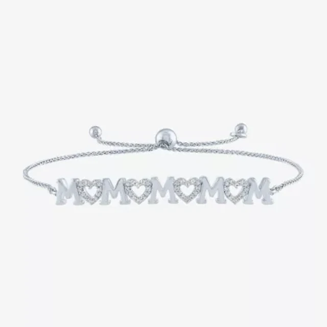 Yes, Please! "Mom" Womens 1/10 CT. T.W. Natural White Diamond Sterling Silver Heart Bolo Bracelet