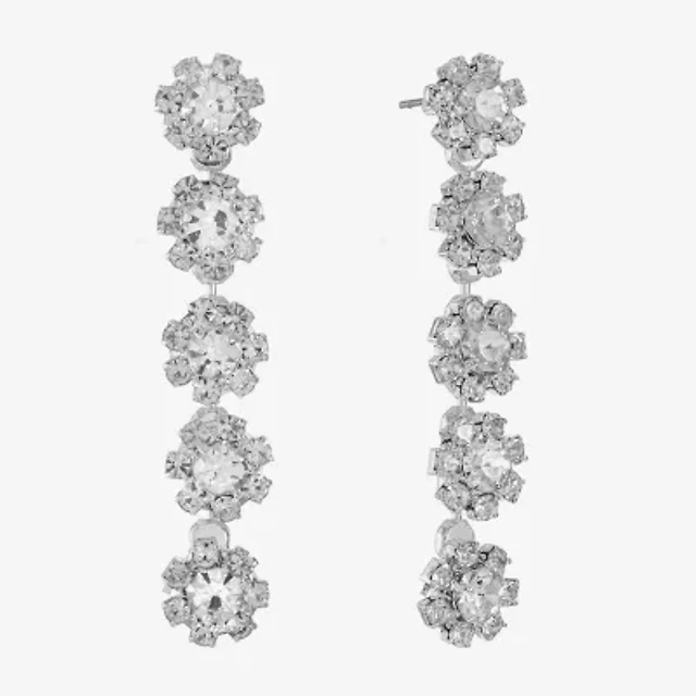 Sparkle Allure Womens Crystal Pure Silver Over Brass Heart Drop Earrings