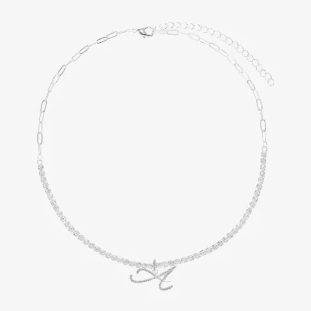 Sparkle Allure Initial Womens Cubic Zirconia Pure Silver Over Brass 16 Inch Tennis Necklace