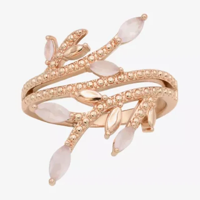 Sparkle Allure Womens Champagne Cubic Zirconia 14K Gold Over Brass Round Bypass Cocktail Ring