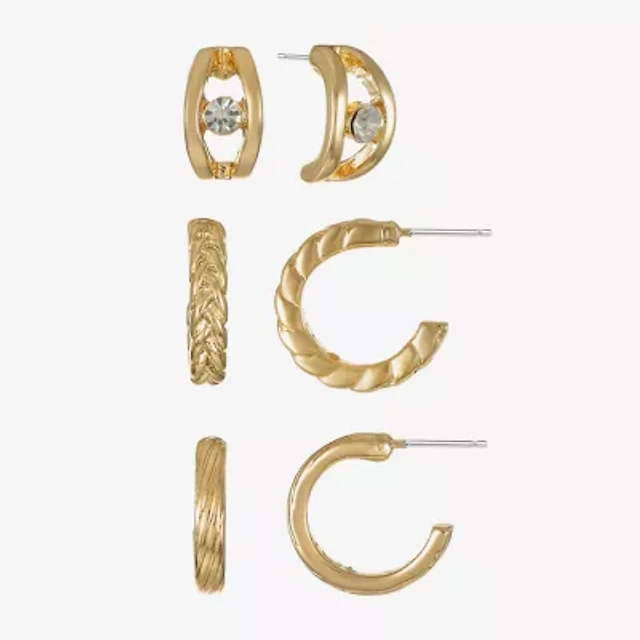 Liz Claiborne Braided & Textured Huggie Hoop Womens Glass Hypoallergenic 3 Pair Earring Set