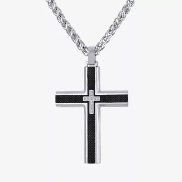 Mens Cubic Zirconia Stainless Steel Cross 24 Inch Pendant Necklace