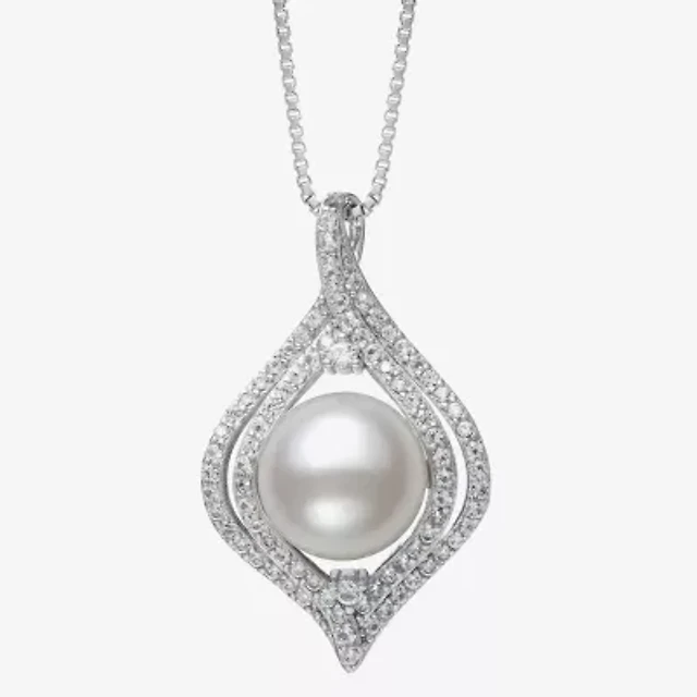 Womens White Cultured Freshwater Pearl Sterling Silver Inch Pendant Necklace