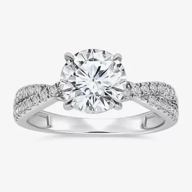 (F,Vs2) Womens 2 CT. T.W. Lab Grown White Diamond 10K Gold Round Side Stone Engagement Ring