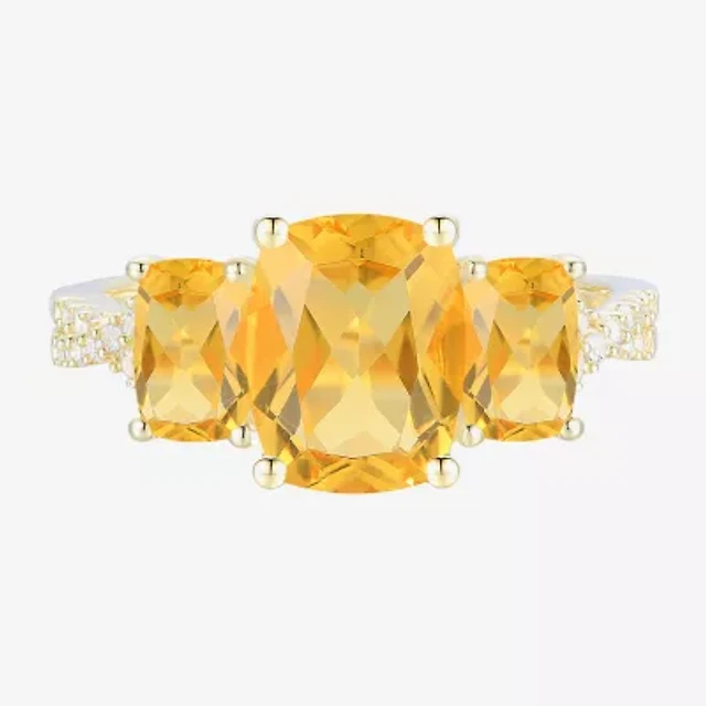 Womens Genuine Yellow Citrine 14K Gold Over Silver Cushion Side Stone Cocktail Ring