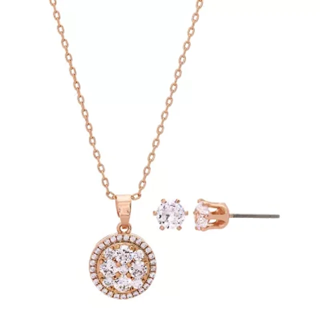 Sparkle Allure Womens Cubic Zirconia 18K Rose Gold Over Brass Round 2-pc. Jewelry Set